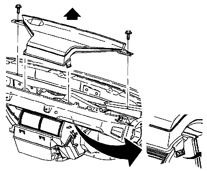 Remove screws and unsnap windshield defroster duct from mode valve assembly. Lift up on defroster duct and move it to the right. This will allow access to resistor assembly.