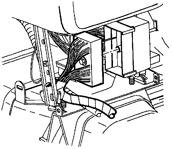 19. Install passenger side air bag harness to energy absorber and cross-car beam.