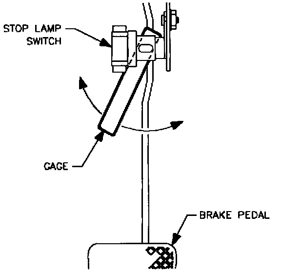 1. Loosen the stop lamp switch mounting nut sufficiently to allow the switch to move forward and rearward in the adjustment slot.