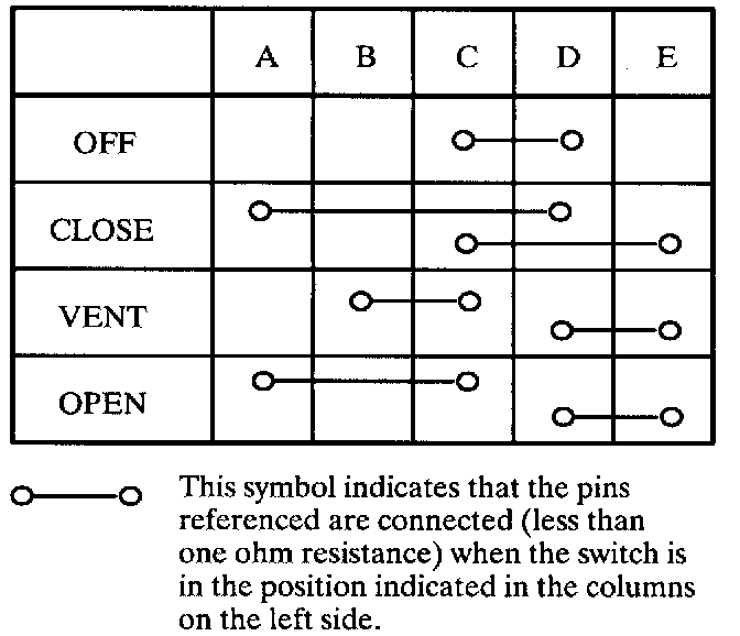 Check for OPENS/SHORTS. Check continuity of switch in OPEN, VENT, OFF (at rest position) and CLOSE positions.
