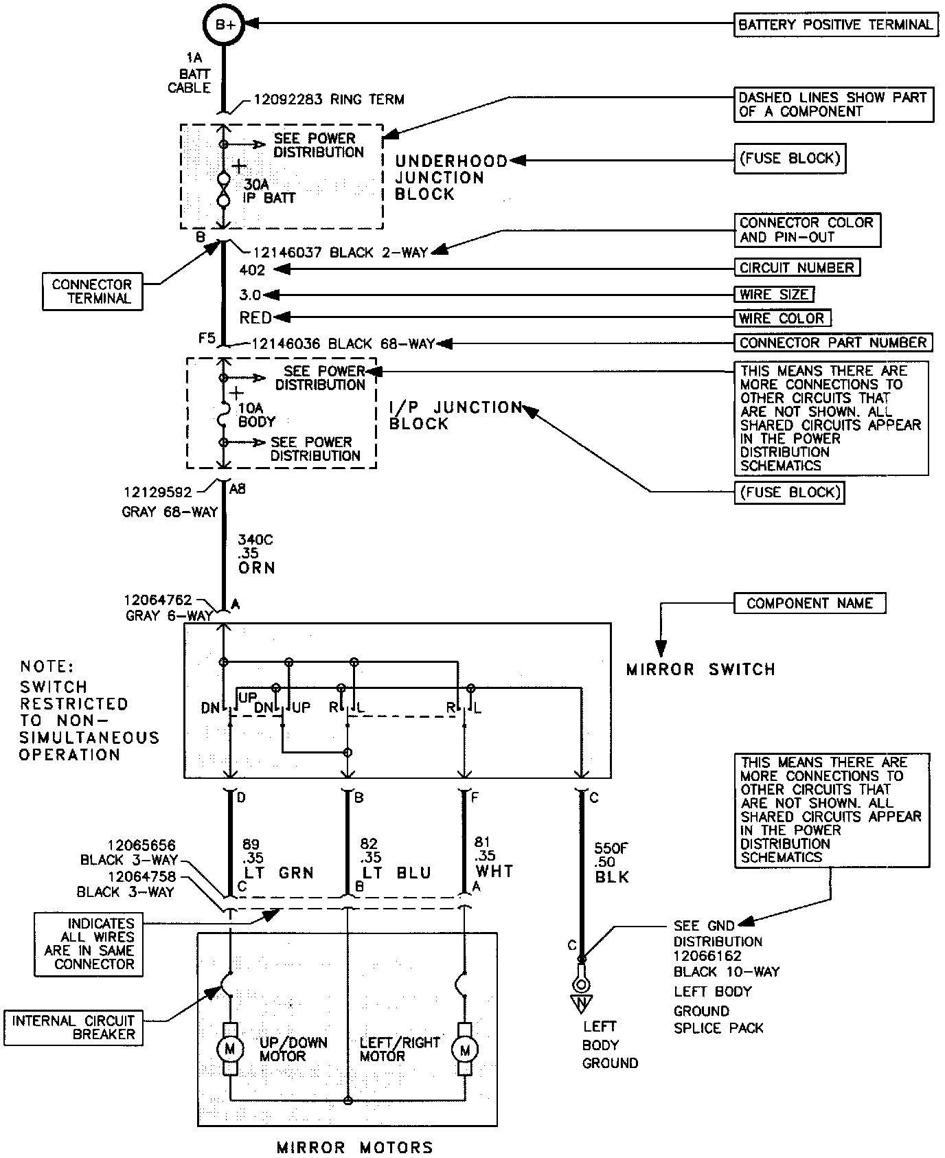 The schematic includes only the fuses, wiring and components required for the system. This prevents you from being distracted by wiring that is not part of the circuit you are working on.