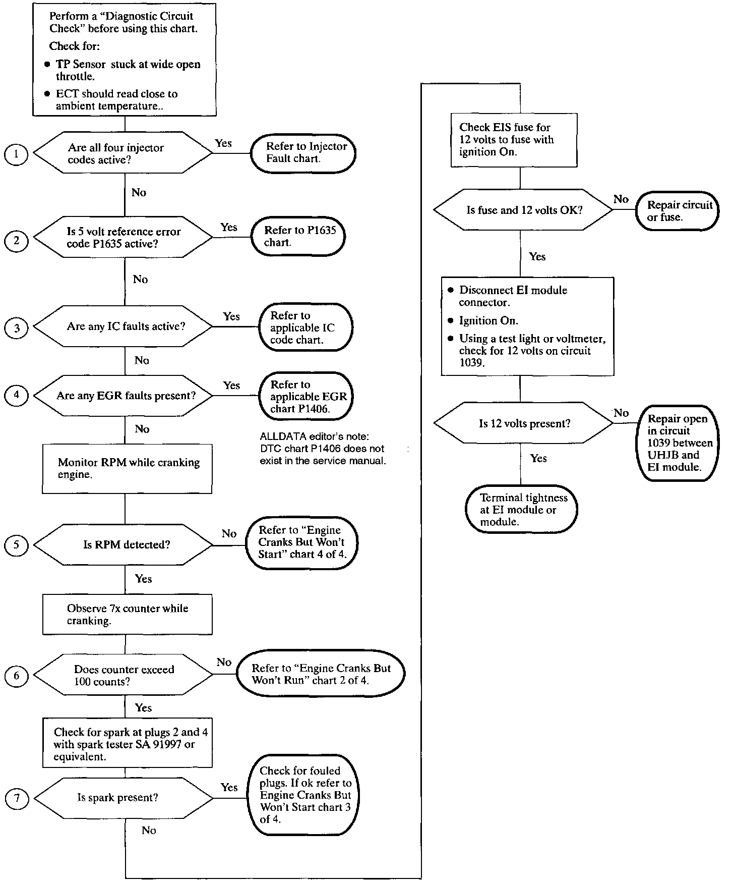 2. If the five volt reference circuit becomes shorted to ground it will result in a no start.