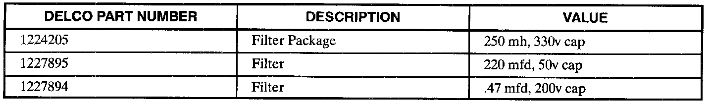 To obtain a noise diagnostic filter, call 1-800-AC DELCO (1-800-223-3526) to obtain the telephone number of the closest Delco Regional Sales Office to set up a Delco Account (if you don't have one), and place your order.