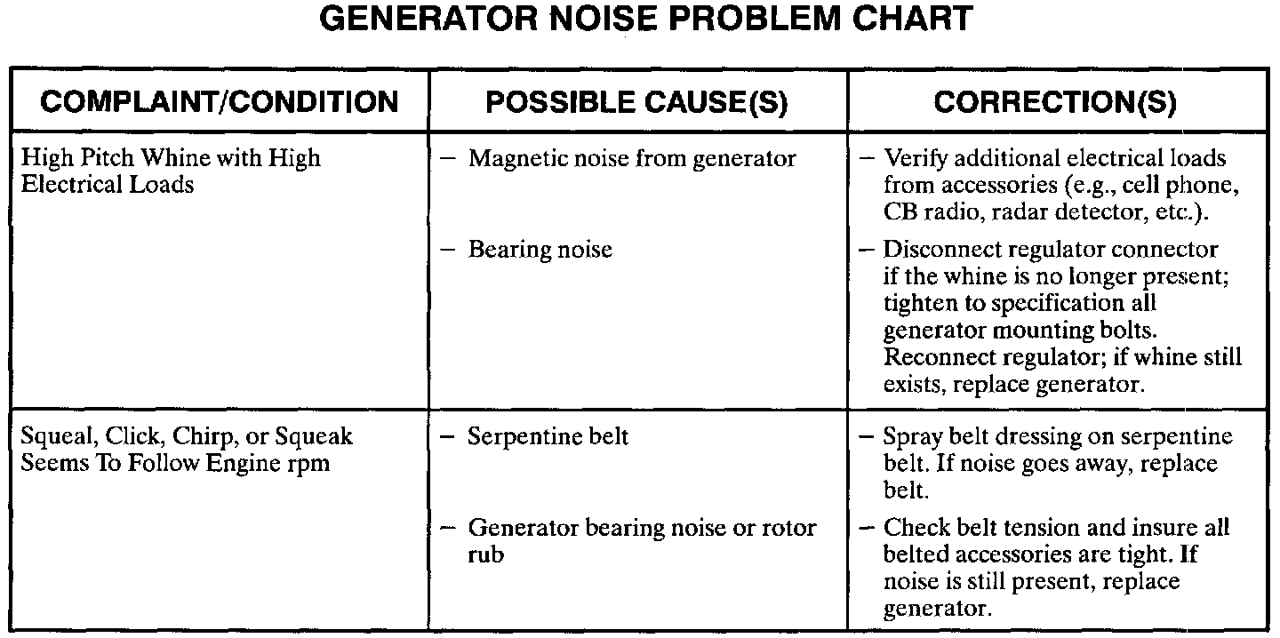 Generator Noise Problem Chart