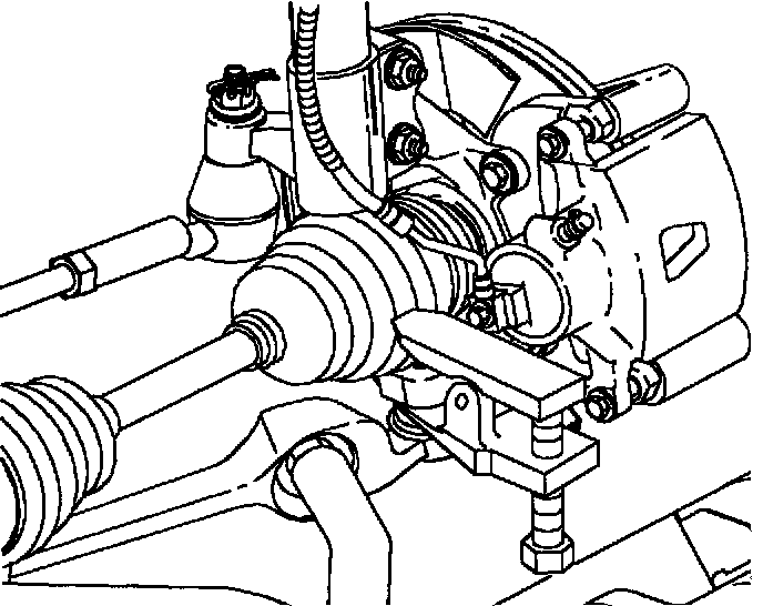 NOTICE: On Anti-Lock Brake System (ABS) equipped vehicles, the outer Constant Velocity (CV) joint has a speed sensor ring. Using the incorrect tool or procedure to separate the control arm from the knuckle can damage the ring, resulting in loss of ABS operation. Do not attempt to separate joint using a wedge type tool because the boot may be damaged.