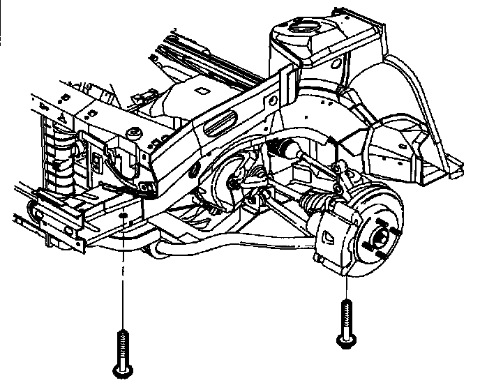 11. Loosen and back off on two cradle-to-body bolts. Do not remove bolts.