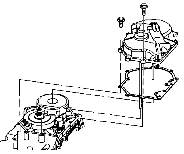 15. Remove end cover. Refer to the "End Cover Disassembly/Assembly" procedures in the "Out-of-Vehicle Service" in Automatic Transmission/Transaxle / Service and Repair. if replacing or reconditioning end cover, tubes, or seals. Refer to the "1st Clutch, 1st Drive Gear and 1st Driven Gear Removal" procedures in the "In-Vehicle Service" Automatic Transmission/Transaxle / Service and Repair.if replacing 1st gear assembly.