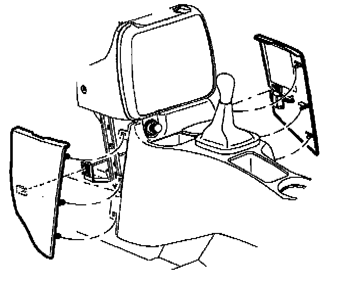 12. Install left and right lower trim panel extensions by inserting hinges into console openings. Then rotate closed and push in at dual lock locations.