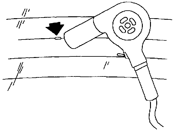 NOTE: The grid line repair material must be cured with heat. To avoid heat damage to interior trim, protect the trim near the repair area where heat is to be applied.