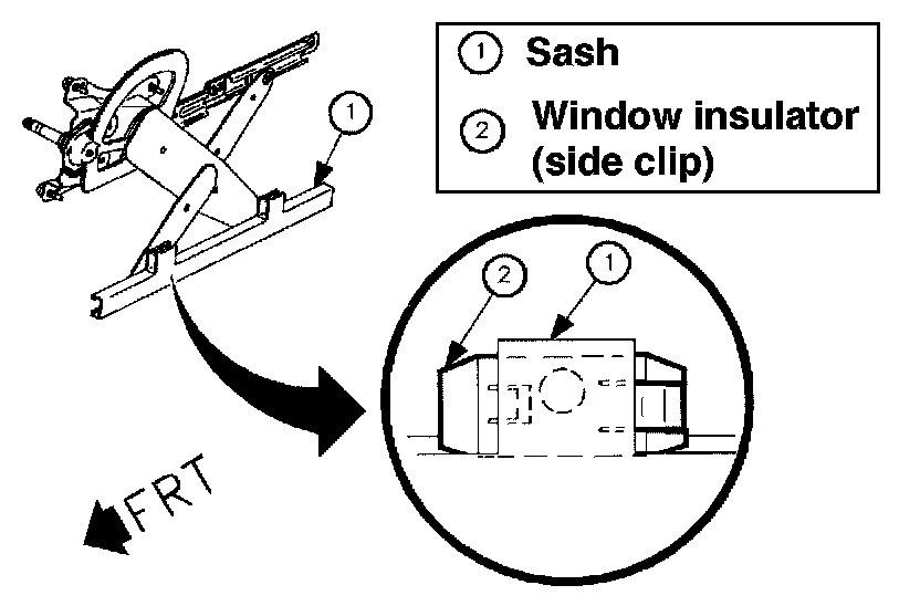 2. Slide sash onto window insulators (slide clips), then check door window operation and alignment.