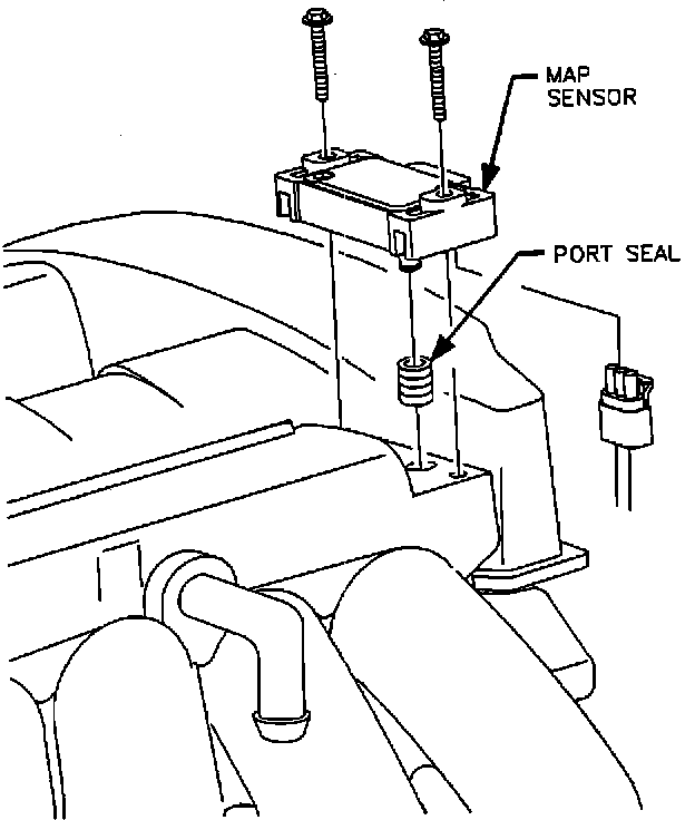 2. Remove attachment bolts and MAP sensor. Remove port seal if retained in intake manifold.