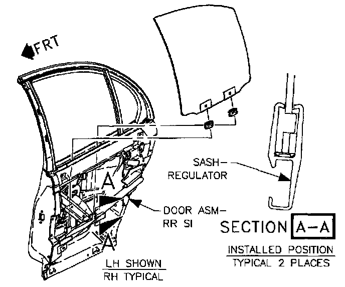 1. Remove door trim panel. Outer panel is removed in illustration to show location.