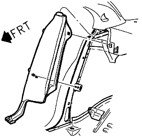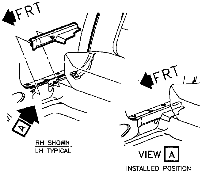 IMPORTANT: Outboard clip of the body lock pillar trim finish molding must be positioned under weather-strip after installation.