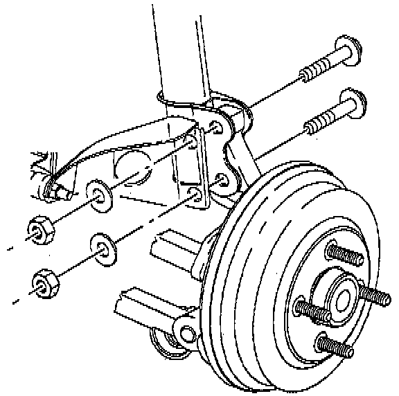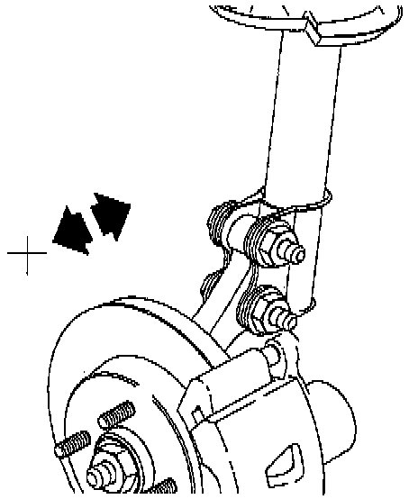 1. Loosen two strut to knuckle fasteners and pull or push on knuckle in the direction of desired camber change. This will allow up to 1.5° of camber adjustment.