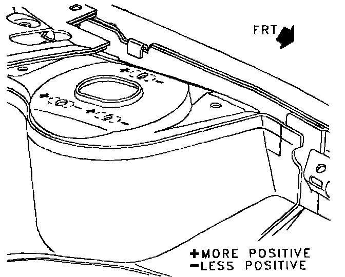 Move the top of the strut forward to decrease positive caster. Move the top of the strut rearward to increase positive caster. Moving the top of the strut 4 mm (0.157 inch) will result in approximately 1/2° of change in caster angle.