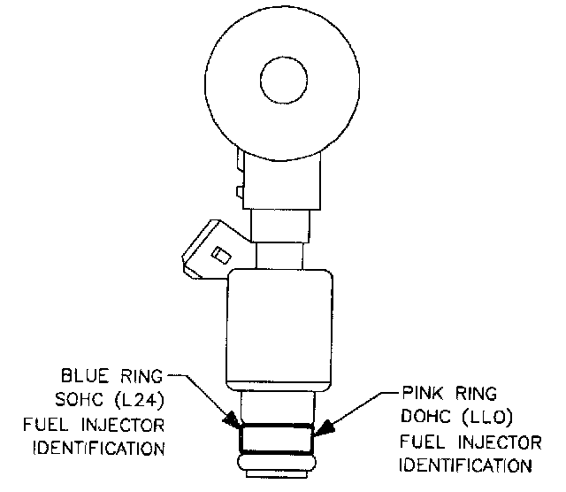 NOTE: D0HC (LLO) and S0HC (L24) fuel injectors are not interchangeable. Verify that the correct fuel injectors are installed in the fuel rail. The fuel injectors are identified by a color coded plastic ring located near the bottom of the fuel injector. The D0HC (LLO) fuel injector is identified by a pink O-Ring that mates to the [1][2]intake manifold.