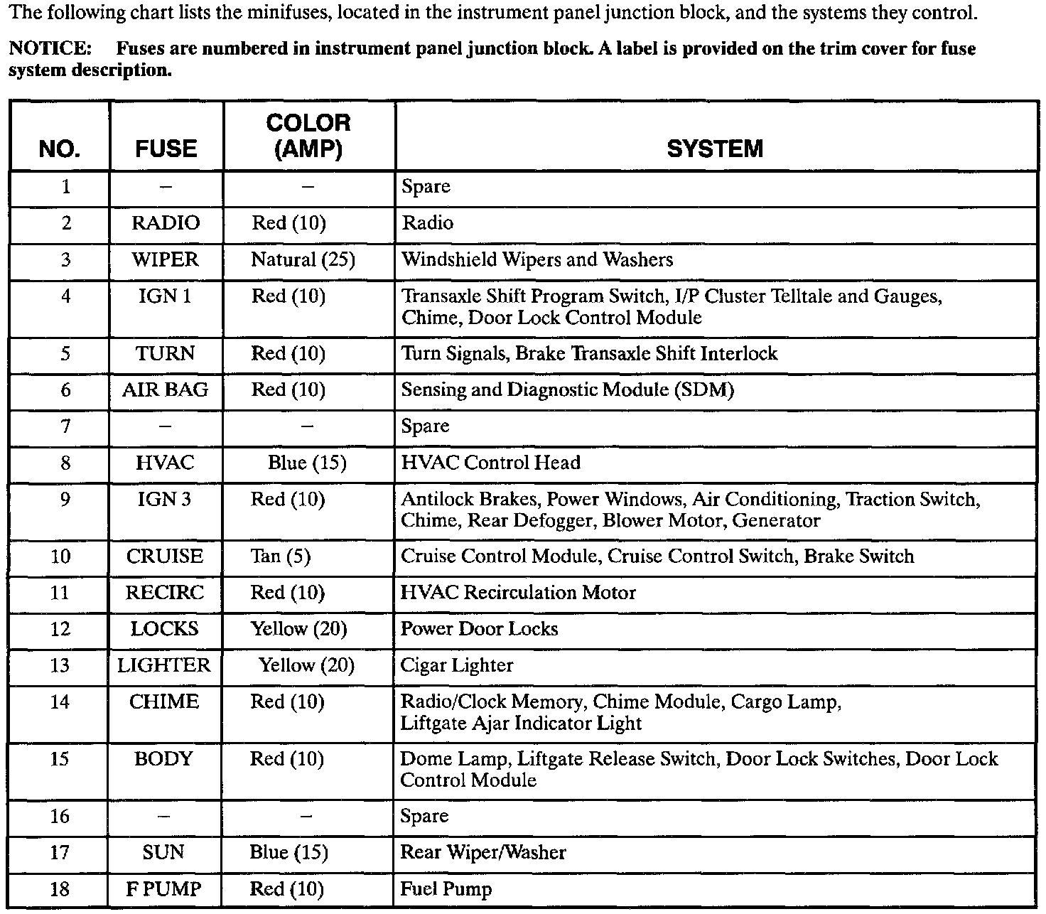 Instrument Panel Junction Block (IPJB): Minifuses Circuit Feeds: