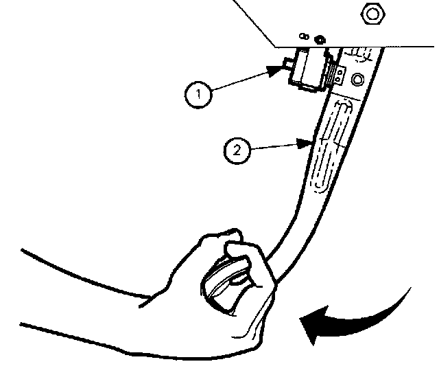1. View stop lamp switch (1) and mounting bracket while pulling up on brake pedal assembly (2) with moderate force (approximately 89 N [20 lbs.]).