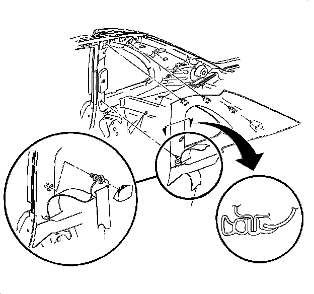 4. Route the shoulder belt out of the C-pillar trim at access slot.