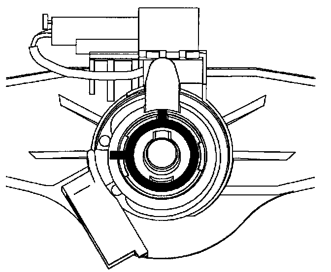 21. Rotate the pawl counter clockwise in the lock latch cylinder housing. If done properly, the keyway in the pawl will slide down over the key on top of lock cylinder.