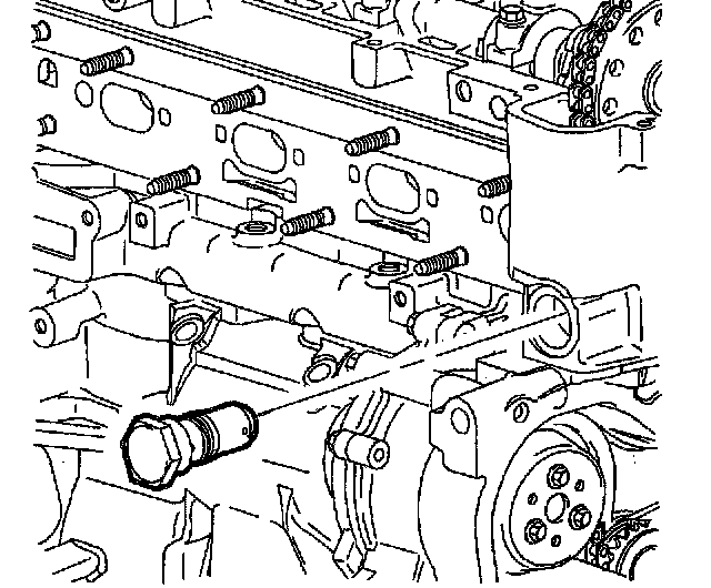 IMPORTANT: The timing chain tensioner must be removed to unload chain tension before the timing chain is removed. If it is not, the timing chain may become misaligned and difficult to remove.