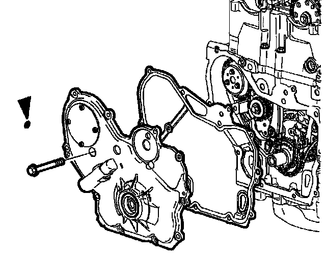 43. Remove all front cover bolts except for bolt that is blocked by engine mount bracket.