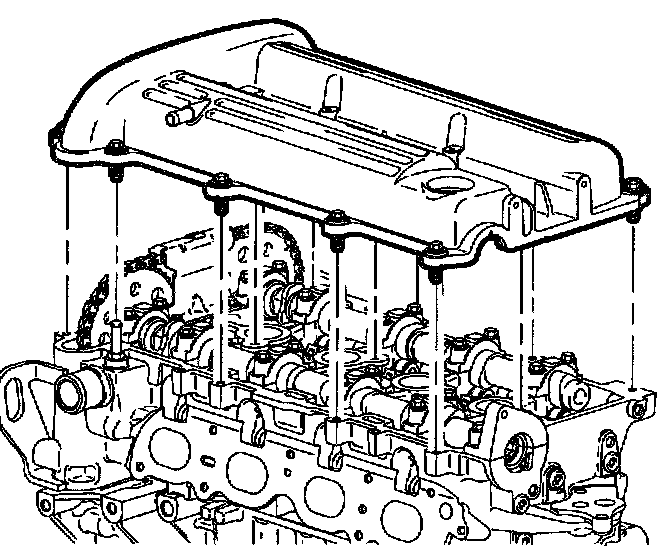 23. Remove camshaft cover bolts and remove cover.