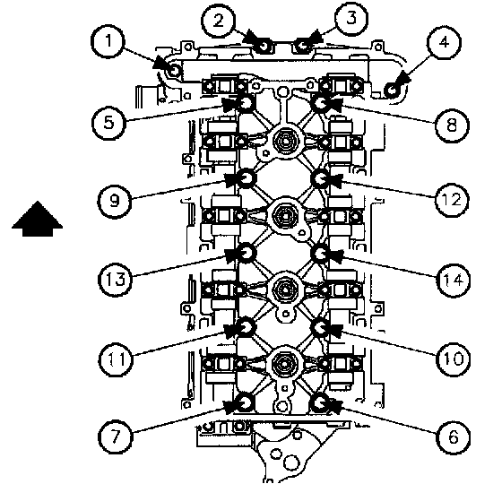 31. Remove cylinder head to block bolts using the loosening sequence.