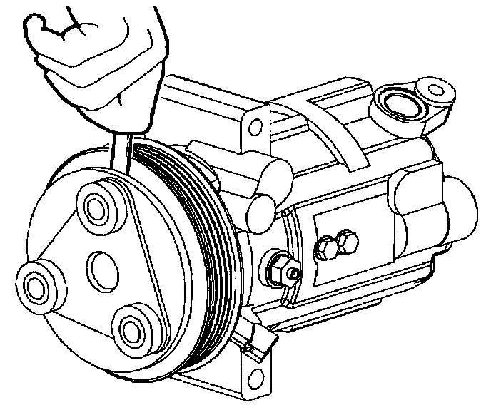 1. Position A/C compressor clutch coil so that electrical connector is aligned with indent in compressor front head.