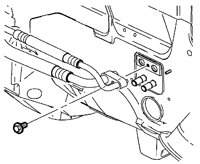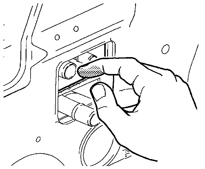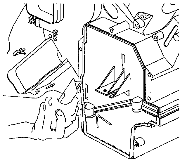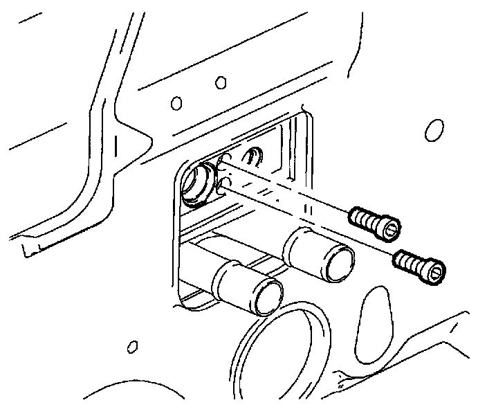 6. Reach down through blower motor opening and locate evaporator pipes and block.