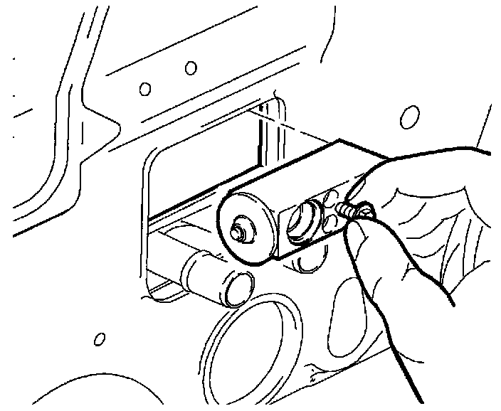 17. Using bolt as a handle, remove TXV from evaporator by gently rocking TXV while pulling forward in vehicle.