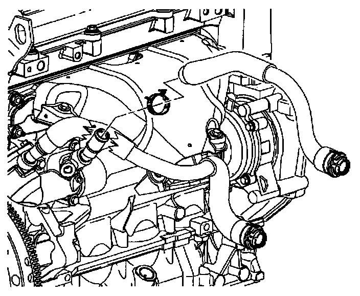 10. Remove heater inlet hose from auxiliary water pump outlet on L81 engines, from thermostat outlet on L61 engine.