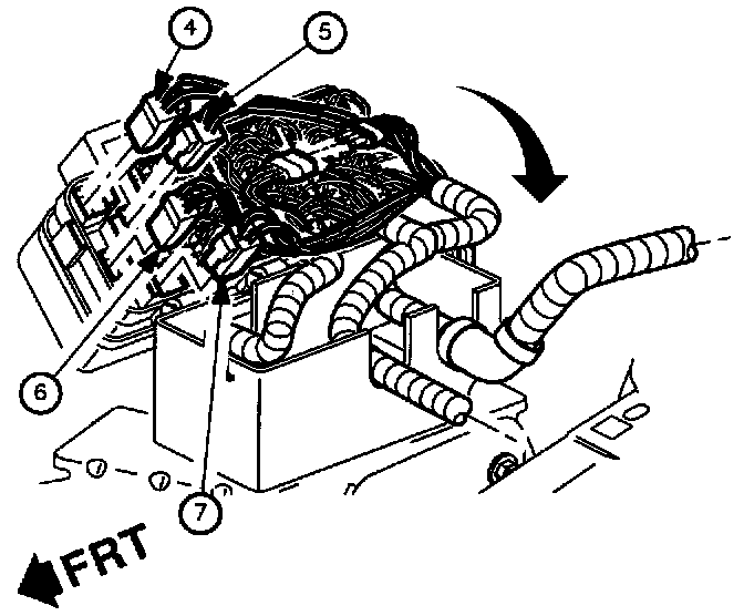 8. Unsnap the engine cooling hose from the fuse block cover.
