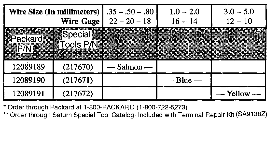 With wiring used in Saturn vehicles, it is recommended that approved Packard Crimp and Seal Splice Sleeves (or equivalent) be used.