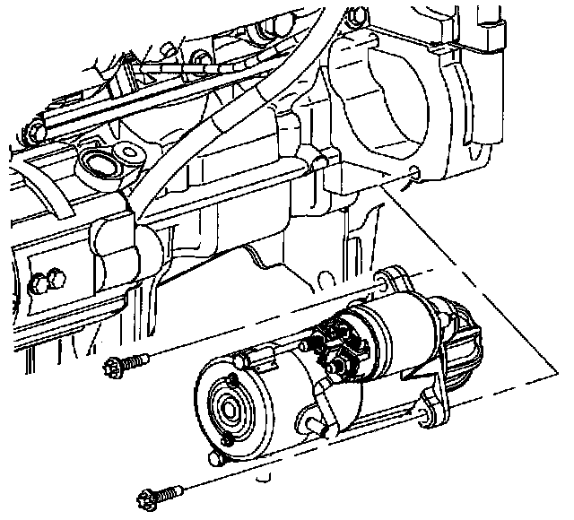 5. Guide starter into engine block (flywheel housing).