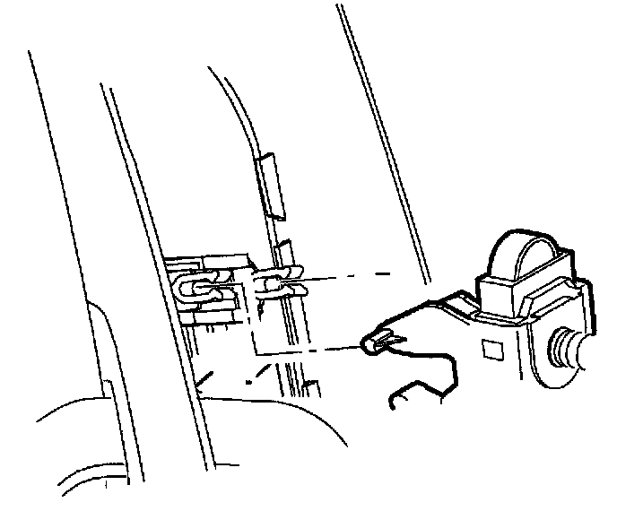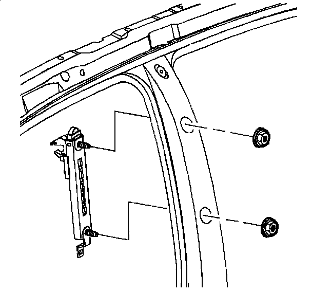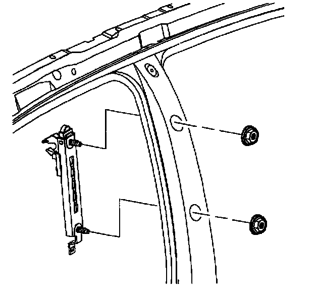 1. Temporarily install shoulder belt height adjuster to center pillar. Hand tighten, but do not torque fasteners.