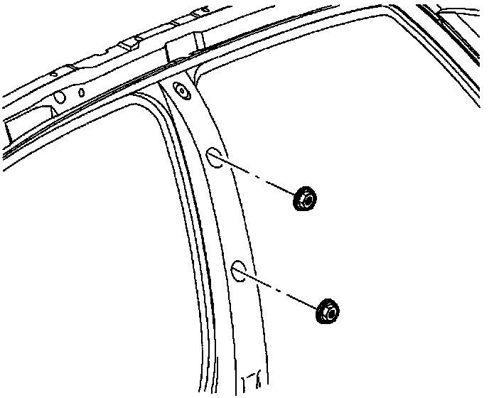 2. Remove center pillar weatherstrip/cover to expose adjuster attaching fasteners.