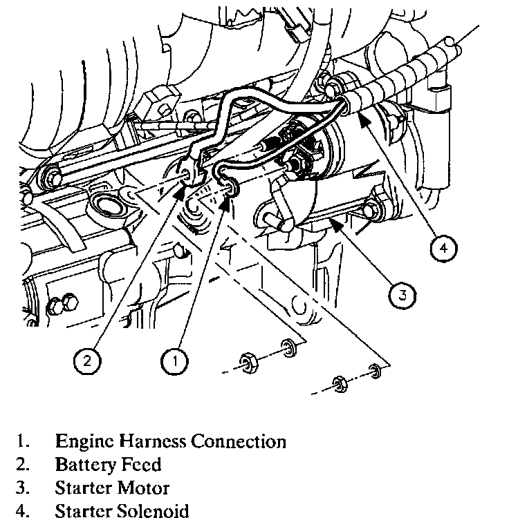 2. Disconnect two starter solenoid electrical connections.