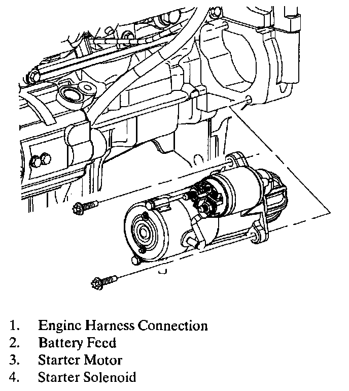 1. Guide starter into engine block (flywheel housing).