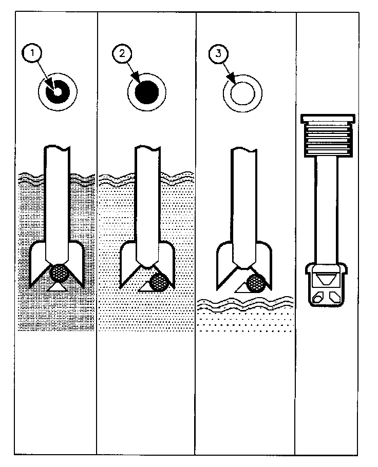 - Dark indicator, green dot not visible: this indicates an insufficient charge of less than 65 percent. The battery must be charged according to the "Battery Charging" procedure.