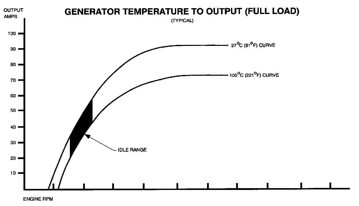 IMPORTANT: When testing a generator, the load, temperature and rpm must be considered to obtain the most accurate conclusion. When using the system tester or a carbon pile tester (carbon pile fully On), the load will be approximately maximum load.