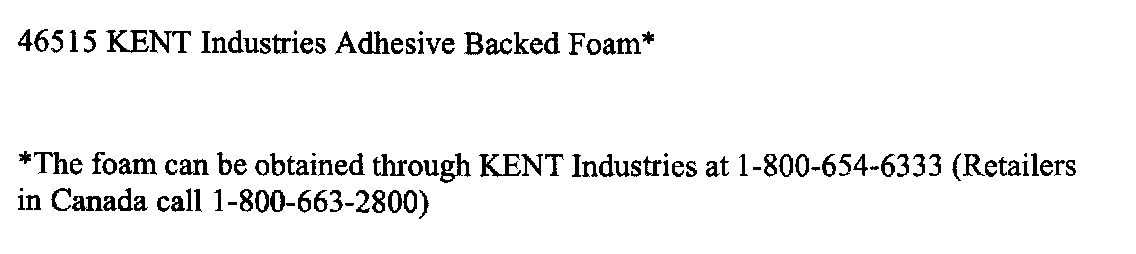 3. Obtain 51 cm (20 in.) of KENT Industries adhesive backed foam (P/N 46515). This foam is 25.4 mm (1 in.) wide, so two pieces will have to be installed side-by-side on headliner to achieve width of spacers necessary.
