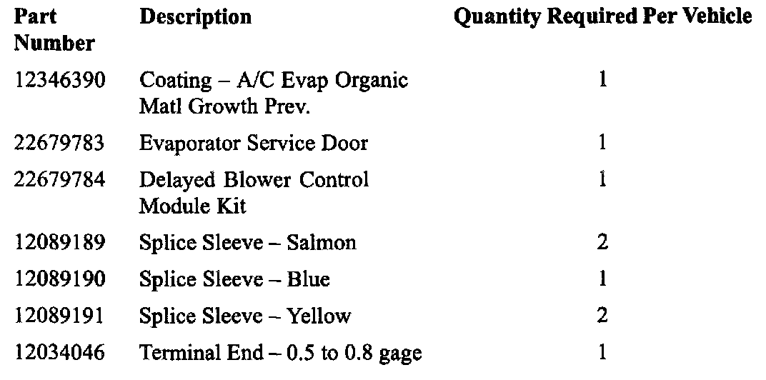 ^ The parasitic current draw of the delayed blower motor control module, combined with the blower motor load, will lower the state of charge of the vehicle's battery, and may negatively impact battery life depending on the driving habits of the customer.