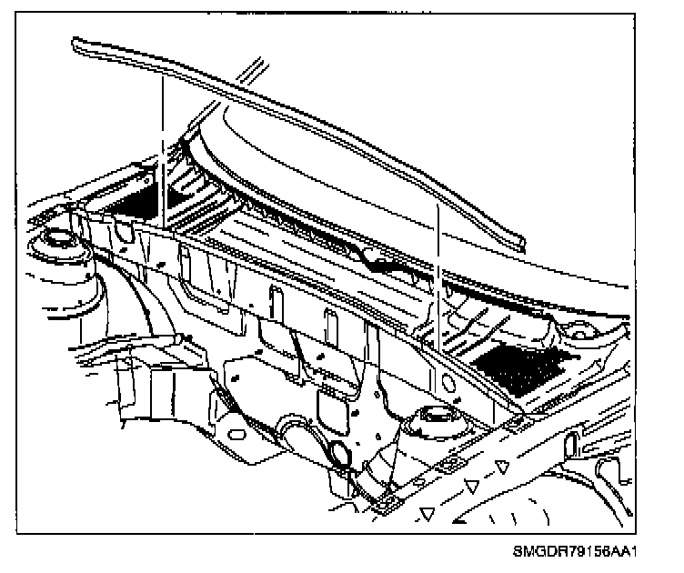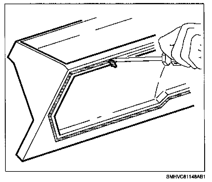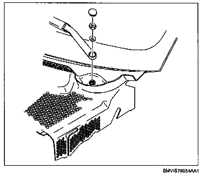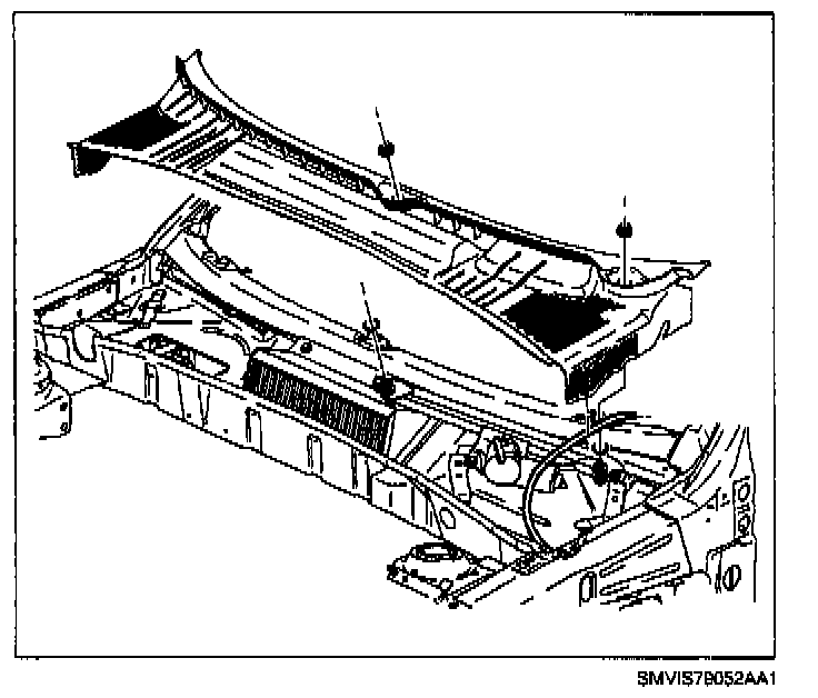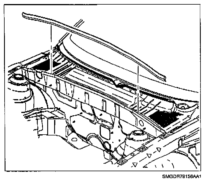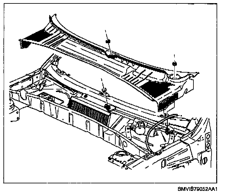 5. Remove weatherstrip at rear of engine compartment.