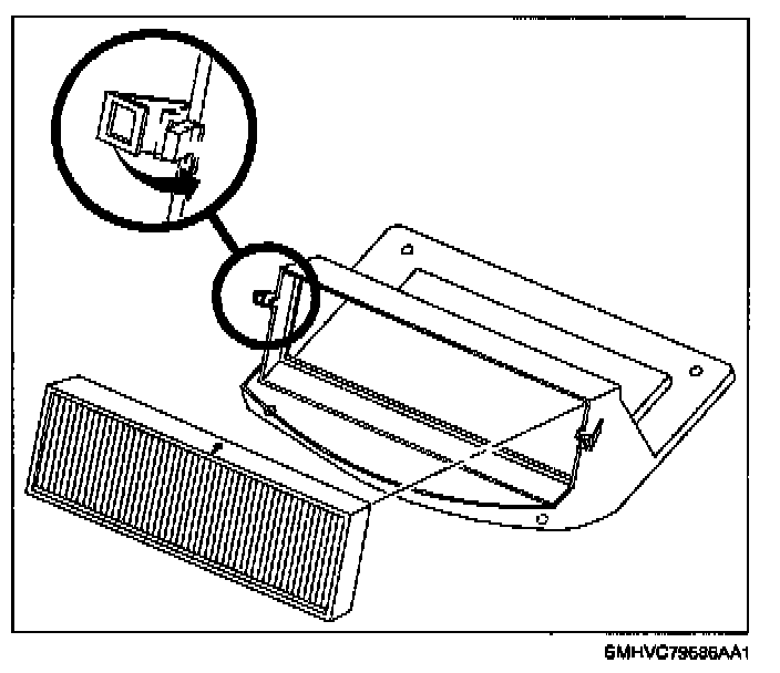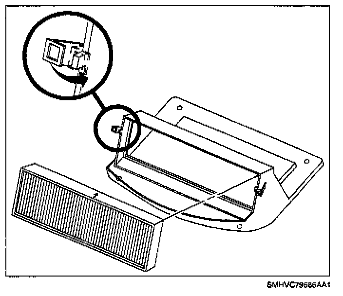 20. Install passenger compartment air filter paying special attention to air flow direction indicator printed on side of filter.