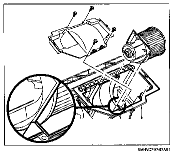 9. Remove passenger compartment air filter housing attachment bolts and remove filter housing.