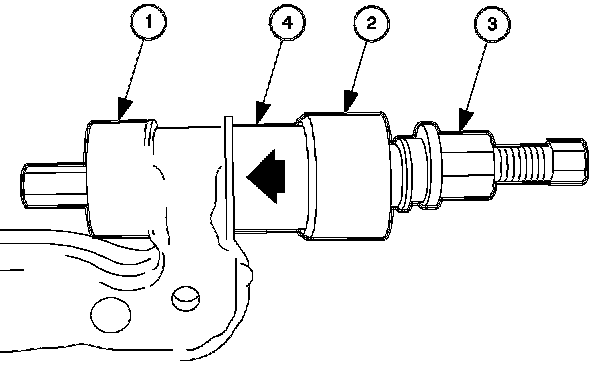 9. Use special tools KM-907-23, KM-907-24 and KM-671 to press in new rear control arm bushing. Ensure that bushing is fully pressed into and seated in control arm.