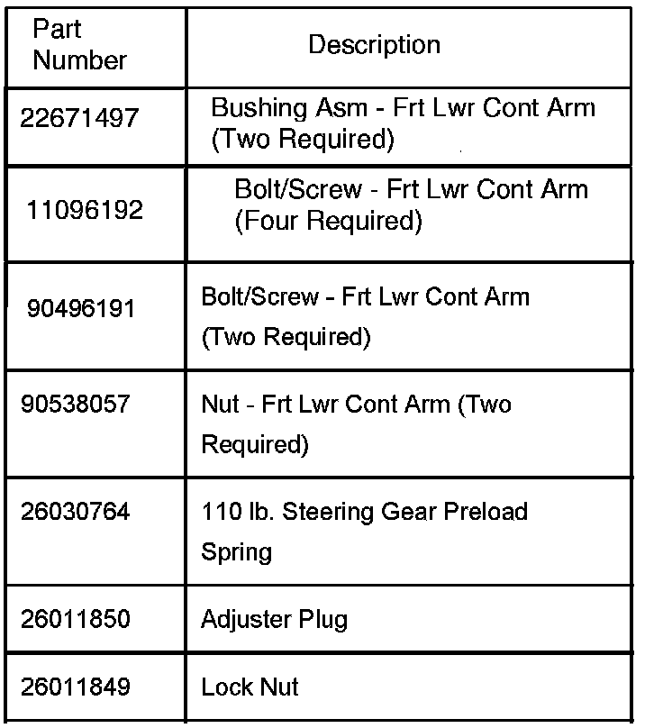 On vehicles built before and including VIN 2Y525531,install new 110 lb. steering gear preload spring. (Refer to Steering Gear Preload Spring Replacement procedure in this bulletin.)