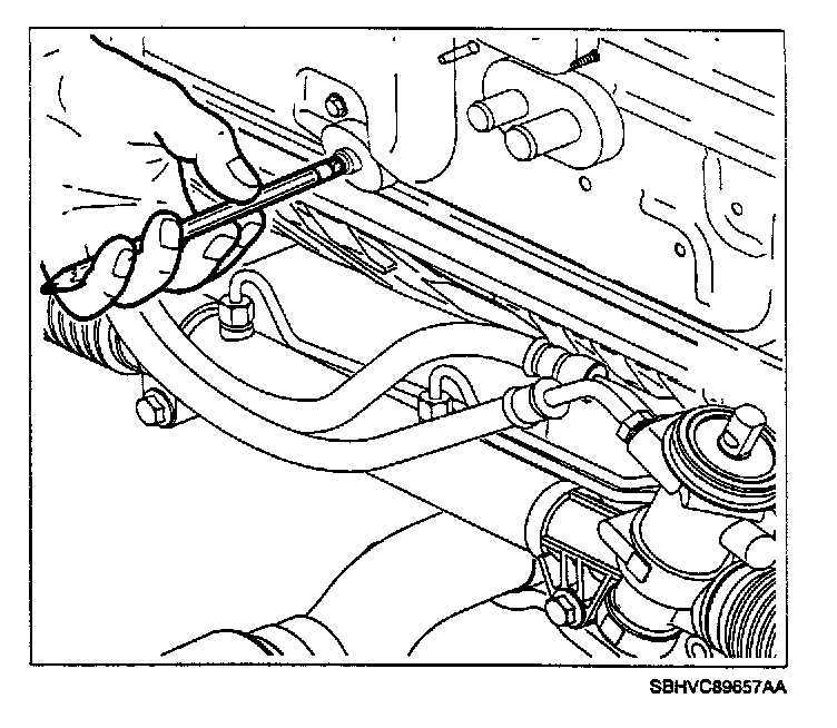 MAKE SURE VEHICLE IS PROPERLY SUPPORTED AND SQUARELY POSITIONED PRIOR TO LIFTING. TO HELP AVOID PERSONAL INJURY WHEN A VEHICLE IS ON A HOIST, PROVIDE ADDITIONAL SUPPORT FOR THE VEHICLE ON THE OPPOSITE END FROM WHICH COMPONENTS ARE BEING REMOVED. ENSURE HOIST DOES NOT CONTACT FUEL OR BRAKE LINES.