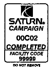 As a reminder, additional labels may be ordered from Saturn publications (1-800-828-2112, prompt 3, Item # S03 00013A for the Campaign Completion Label, and Item # S03 00013B for the Clear Protective Cover).